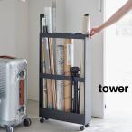 山崎実業 キャスター付き長物収納スリムワゴン タワー ブラック_017145 キッチン整理用品 整理ボックス