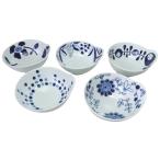 西日本陶器 食器 器 ボウル 中鉢 とんすい 5個 セット 有田焼 持ちやすい絵変りボウル 5柄組 白/紺色 約径13.5×最大幅14.3×高7.3c