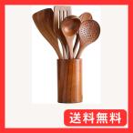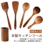 キッチンツール6点セット 天然アカシア木製 接着剤なし スタンド付き フライ返し 炒めへら しゃもじ スープスプーン おたま ナチュラル 吊り下げ