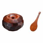 摺り漆木製飯器セット(蓋・しゃもじ付) 大 約φ18xH9.5cm しゃもじ約16cm