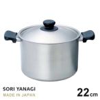 柳宗理 ステンレス 両手鍋 深型 つや消し 22cm ガス火対応 幅347×径237×高207mm ふた付き 日本製