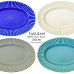食器 楕円プレート 楕円皿 おしゃれ SAKUZAN Stripeオーバルプレート(L)長幅28cm 作山窯 ホワイト ターコイズ マリンブルー グレー 大皿 パスタ皿