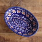 ポーランド食器 ポーリッシュポタリー 深皿 オーバルボウル グラタン皿 ネイビー 白 マーガレット ガーベラ 花柄 P139-ALC5