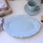 オーバルプレート 楕円皿 アンティーク風 洋食器 ミニョン ブルー ディナー皿 フレンチ食器 アンティーク調 陶器 シャビーシック antique 可愛い おしゃれ