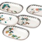 九谷焼 7号皿揃(楕円皿5枚セット)山茶花K9-105