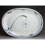 砥部焼 梅山窯・布目楕円皿(特大)太陽