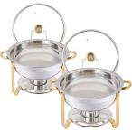 2個セット チェーフィングディッシュ 保温鍋 卓上コンロ 温蔵ショーケース 丸型 耐久性 ビュッフェ ホテル 旅館 宴会 パーティー 店舗用 業務 サービス機器