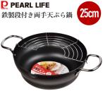 天ぷら鍋 揚げ物鍋 25cm 鉄製 ガス火 IH対応 ガス IH 段付天ぷら鍋 パール金属 揚げクック HB-1375 HB1375 鉄鍋 両手鍋 家庭用 油ハネしにくい 網付き アミ