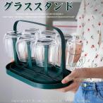 グラススタンド 水切り 北欧風 6個掛ける トレイ付き コップスタンド スタンド カップ収納 ラックコップ キッチン収納 乾燥用 キッチン雑貨 おしゃれ