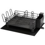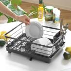 水切りラック シンク上 ステンレス 黒 水切りかご 水切りカゴ 大容量 ワイド 水が流れる キッチン おしゃれ ブラック 黒 カトラリー入れ カトラリースタンド 水切りトレー キッチンタオルハンガー ディッシュラック 水切りバスケット キッチン用品 宅H
