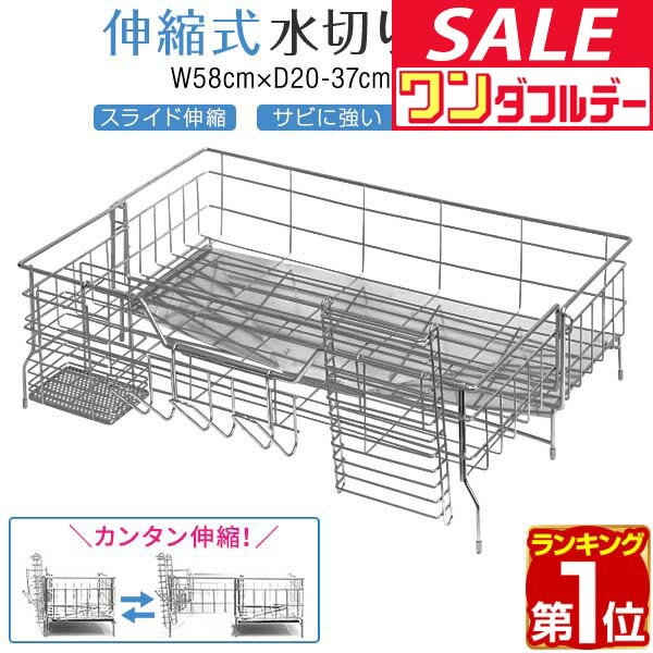 \0のつく日限定!全品10%OFFクーポン配布中!/楽天1位獲得★水切りラック 水切りかご 伸縮式 ステンレス 大容量 自動排水 省スペース 食器水切り食器洗い スライド式 シンクサイド 台所キッチン用品収納 キッチンラック シンク上 組立簡単 2段 耐荷重30kg