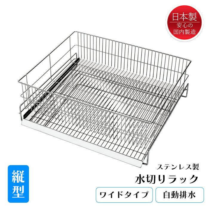 【楽天スーパーSALE10%OFF】水切りラック ワイド 縦置き シンク上 ステンレス製 水切りカゴ トレー付き シンプル 衛生的 日本製 キッチン収納 台所収納