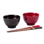 吟朱・溜 夫婦汁椀(箸付) 2602