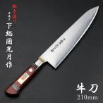 下総国光月作 牛刀 両刃 210mm 白紙1号 全鋼 真鍮ロウ付け口金付き 手研ぎ本刃付け ワインレッドパッカー柄