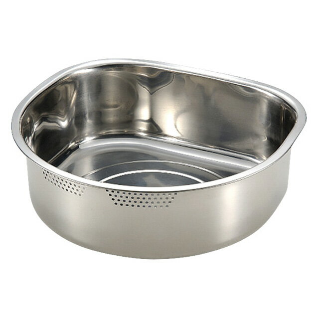18-8ステンレス 洗い桶 D型 (穴あき・ラバー付) 30×27×深11cm / 食器洗い 野菜洗い 食器 野菜 洗い 桶 洗桶 ステンレス キッチン 台所 流し 台 穴 ラバー 耐錆 耐摩擦 錆びにくい 滑り止め パンチング 加工 家庭 飲食店 清潔 調理器具 001019002