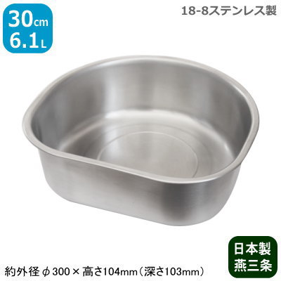 18-8ステンレス D型 洗い桶 30cm 6.1L 【ctaa】 タライ たらい 洗い桶 ステンレス 燕三条 日本製 業務用
