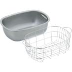 小判型洗桶 水切りかごセット 日本製 洗い桶 水切り籠 カゴ付き オールステンレス 丈夫 頑丈 高品質 楕円型 シンプル おしゃれ 送料無料