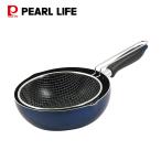 パール金属 フライパン 22cm IH対応 目盛付 ザル付 ふっ素加工塗膜加工 ブルー HC-723