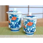 蓋付き湯呑み 木箱入り 有田焼 色鍋島岩牡丹 ペア湯のみ