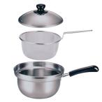 片手鍋3点セット 20cm IH対応 蓋付き ザル付き ゆで名人 ステンレス製 日本製 ( ガス火対応 ステンレス鍋 調理器具 )