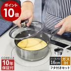 特典付き! CORELLE コレール ソースパン 16cm ガラスふた付き 片手鍋 蓋付き ガス火 IH 対応 強火調理可 食洗機可 10年保証 CSS16SVWL