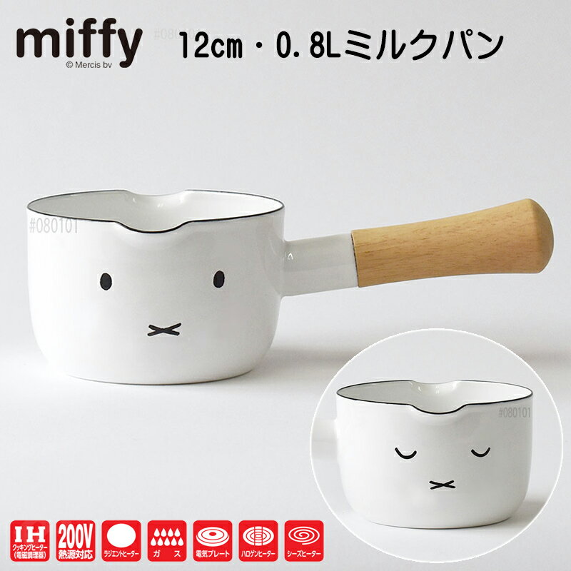 【スーパーSALE★20%OFF】ミッフィー ミルクパン ih対応 12cm 離乳食 ホーロー 鍋 片手鍋 富士ホーロー 琺瑯 白 ミッフィーフェイス かわいい おしゃれ fujihoro