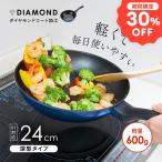軽量 フライパン ダイヤモンドコート IH対応 ガス火対応 24cm 深型 深め 多層コート フッ素コート 焦げ付きにくい 深型フライパン 片手鍋 人工ダイヤモンド配合