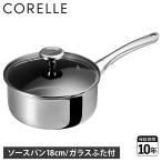 特典付き! CORELLE コレール ソースパン 18cm ガラスふた付き 片手鍋 蓋付き ガス火 IH 対応 強火調理可 食洗機可 10年保証 CSS18SVWL