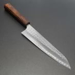 包丁 牛刀 210mm 粉末ステンレスハイス スーパーゴールド2 槌目 鍛造 7寸 カトウ打刃物 義実作 樫焼き 漆柄 MINAMO 越前打刃物 日本製