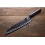 二唐作 包丁 牛刀 黒打ち SPG2 D型チーク柄 210mm 二唐刃物鍛造所