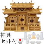 神棚 (お宮) マス組付屋根違い三社 (本けやき) 神具セット付き 高さ49cm×巾67cm×奥行25cm(日本製 神具 三社神棚 三社宮 欅 ケヤキ)