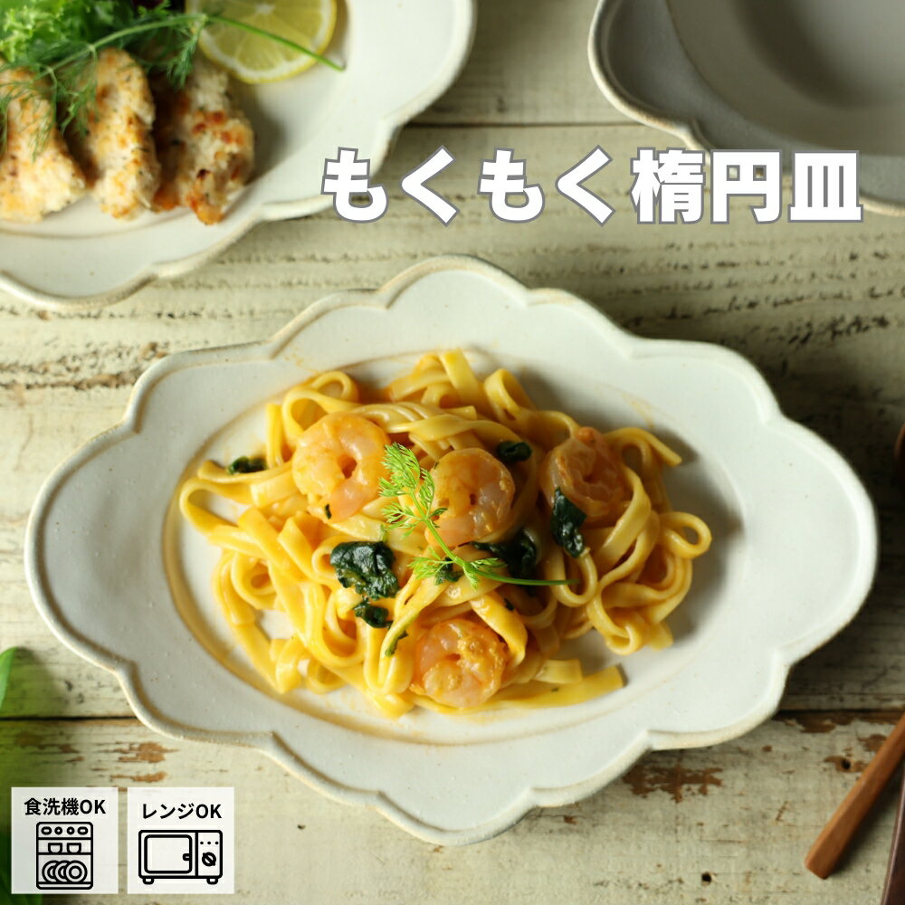 【max30%offクーポンあり】もくもく楕円皿 kinari 益子焼 わかさま陶芸 ナチュラル陶器 楕円皿 リム皿 中皿 パスタ皿 フルーツ皿 サラダ 料理映え フリル おもてなし おうちカフェ かわいい器