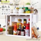 流れる突っ張り水切りラックホワイト箸立てコップかけまな板立て布巾かけS字フックりトレーつき