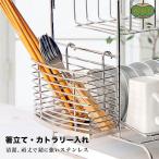 水切りかご ステンレス シンク上 日本製 水が流れる コンパクト 縦型 箸立て付き