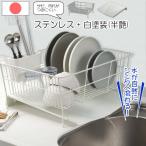水切りラック 食器ラック 水が流れる トレー付き ワイド横型 水切りかご 大容量 ステンレス ポリエステル粉体塗装 箸立て付 おしゃれ ホワイト 日本製 爆買