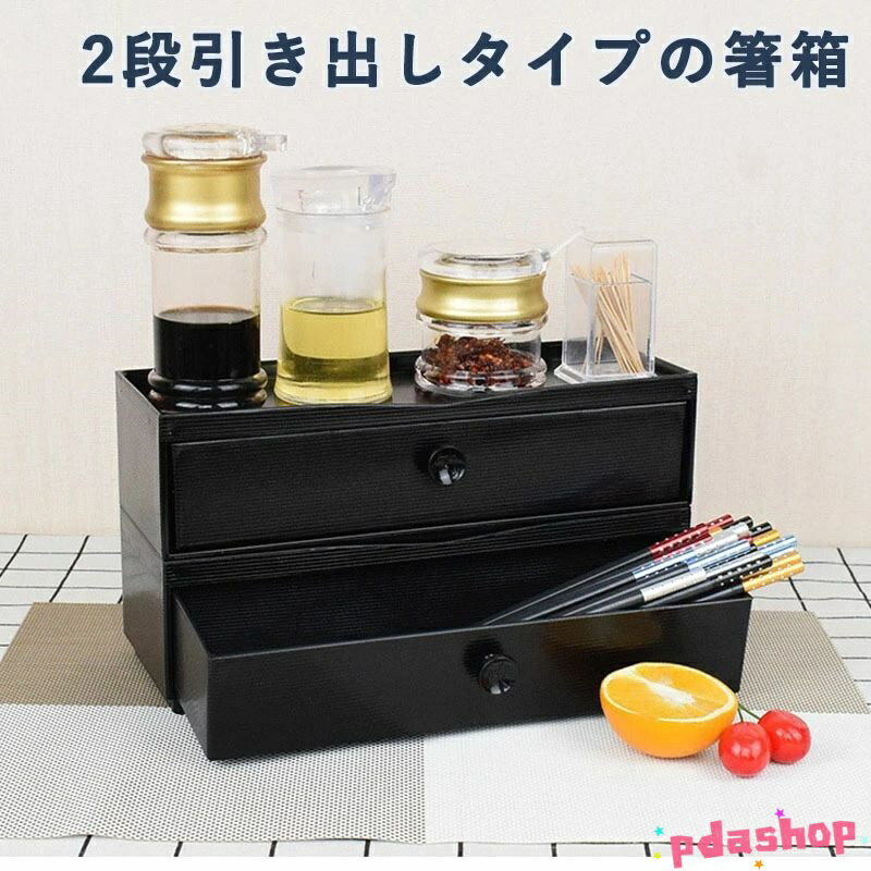 【全品2点で5%OFF】2段式 箸箱 業務用 箸入れ カトラス カトラリー収納 大容量 スプーン レンゲ テーブル 卓上 飲食店 自宅用 フォーク トップに調味料置き シンプル ブラック 黒 ラーメン店 引き出し式 水切り付き 料理屋 食卓 居酒屋 食堂 料理店