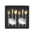 クチポール ゴア ホワイトマットゴールド デザートセット + カトラリーレストゴールド 8点セット ギフトボックス入り 正規販売代理店 カトラリー 結婚祝い