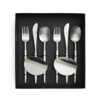 クチポール ムーンマット ブラック ディナーセット(ナイフ・フォーク・スプーン) + カトラリーレスト 8点セット ギフトボックス入り Cutipol MOON MATT
