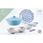 ふるさと納税 食器・グラス 皿 佐賀県 有田町 有田焼 鍋パーティ10点セット スカイブルー まるぶん 食器 器 うつわ 土鍋 取り鉢 箸置き 染付 赤絵 25万円 A250…