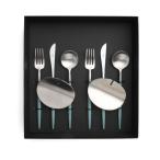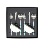 クチポール ゴア ターコイズ デザートセット + カトラリーレスト 8点セット ギフトボックス入り Cutipol 正規販売代理店 カトラリー 結婚祝い プレゼント 贈り物