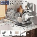 12月1日10時迄 500円off 水切りラック 頑丈 2段 ステンレス ワイド 奥行30.5cm 縦置き 流れるトレー 水切り カゴ かご 2段水切り 箸立て シンク 国産 川口工器