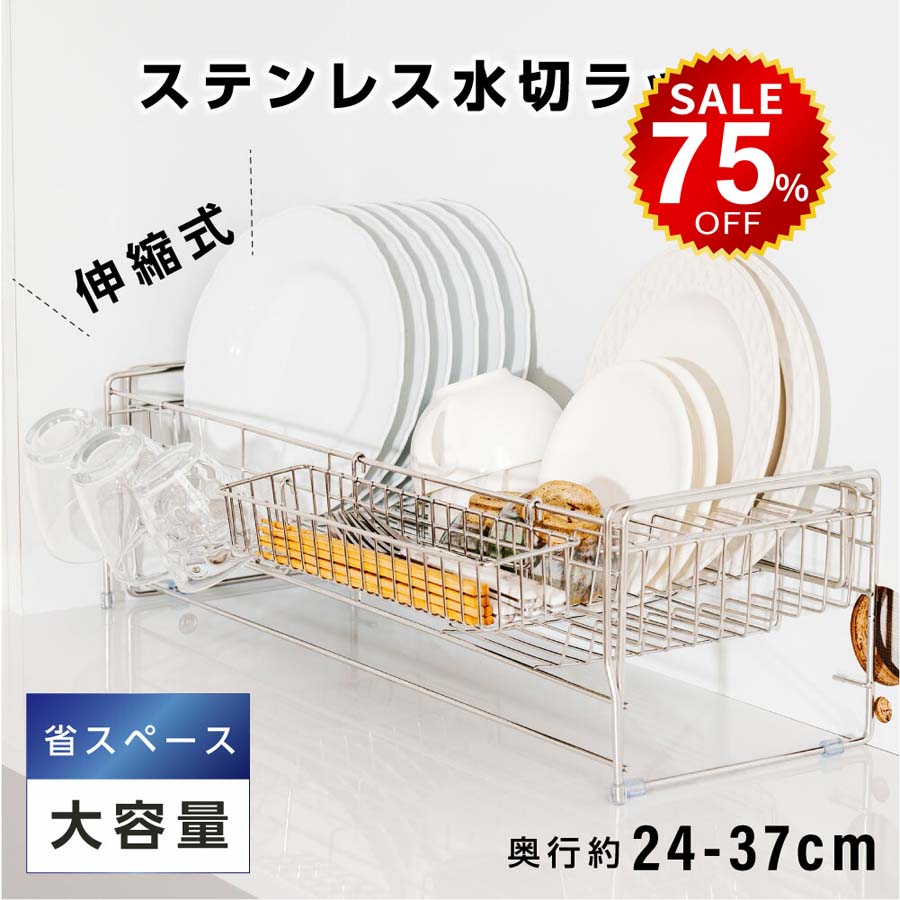 水切りラック ステンレス 伸縮 大容量 シンク上 キッチン 水切りかご 水切りカゴ 食器 収納 水が流れる 横置き おしゃれ コップ 箸 まな板 省スペース 食器乾燥