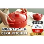ふるさと納税 【美濃焼】セラキッチン両手鍋24cm(レッド)【クリヤマ】キッチン用品 調理器具 土鍋 料理 ご飯 おかず スープ シンプル かわいい.. 岐阜県土岐市