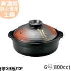 直火専用 土鍋 美濃焼 明志野(あきしの) 団らん 6号 (800cc 1人用) 日本製 国産 耐熱 直火対応 黒 茶色 おしゃれ かっこいい 一人鍋 引っ越し祝い 誕生祝い