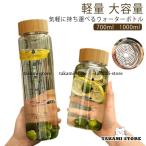 透明 茶こし付き 700ml ボトル タイムマーカー付き 木の蓋 クリアボトル 大容量 通勤 漏れ防止 耐熱 ガラスカップ ガラス マグボトル 水筒
