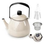 DQ CORAL 2025ver・茶こし + ブラシ4本付き やかん ホーロー グレージュ IH ガス火 対応 2.5L 大容量 ストーブに乗せ