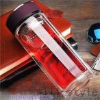 500ml 二重ガラス ボトル 水筒 ウォーターボトル 耐熱ガラス 透明 ガラス水筒 ケータイマグ 茶こし付き 男女兼用 漏れ防止 直飲み