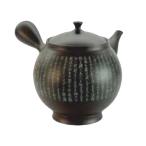 常滑焼 名工作品逸品急須 黒窯変 奥の細道彫急須 約320ml (スッキリ茶こしセラメッシュ) <誕生日 母の日 父の日 敬老の日 普段使い>