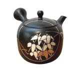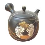 常滑焼急須 宗則 陶茶こし 黒窯変 菊彫 木箱入 約200ml