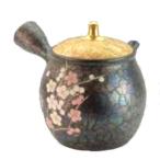 常滑焼急須【名工作品】昭龍天目錦蓋桜 後手急須 約180cc セラメッシュ茶こし